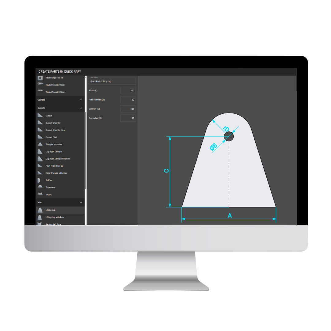 Quickly create standard parts such as base plates, flanges and bracketry from a library of templates, and customise them to your needs.